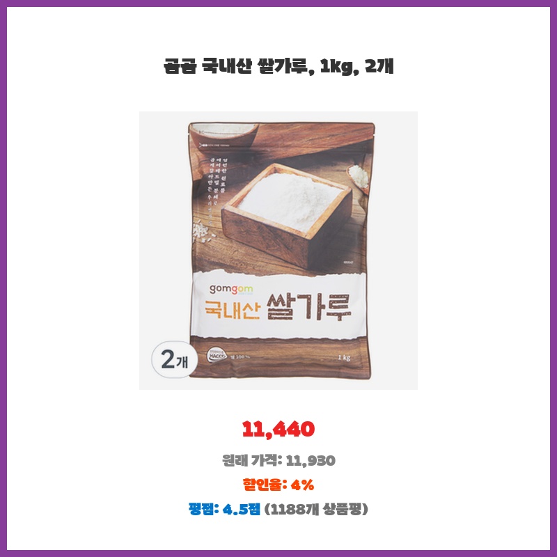 특가 한정 뚜레반 국산 쌀가루 1kg 2개 포인트 쏠쏠한 제품